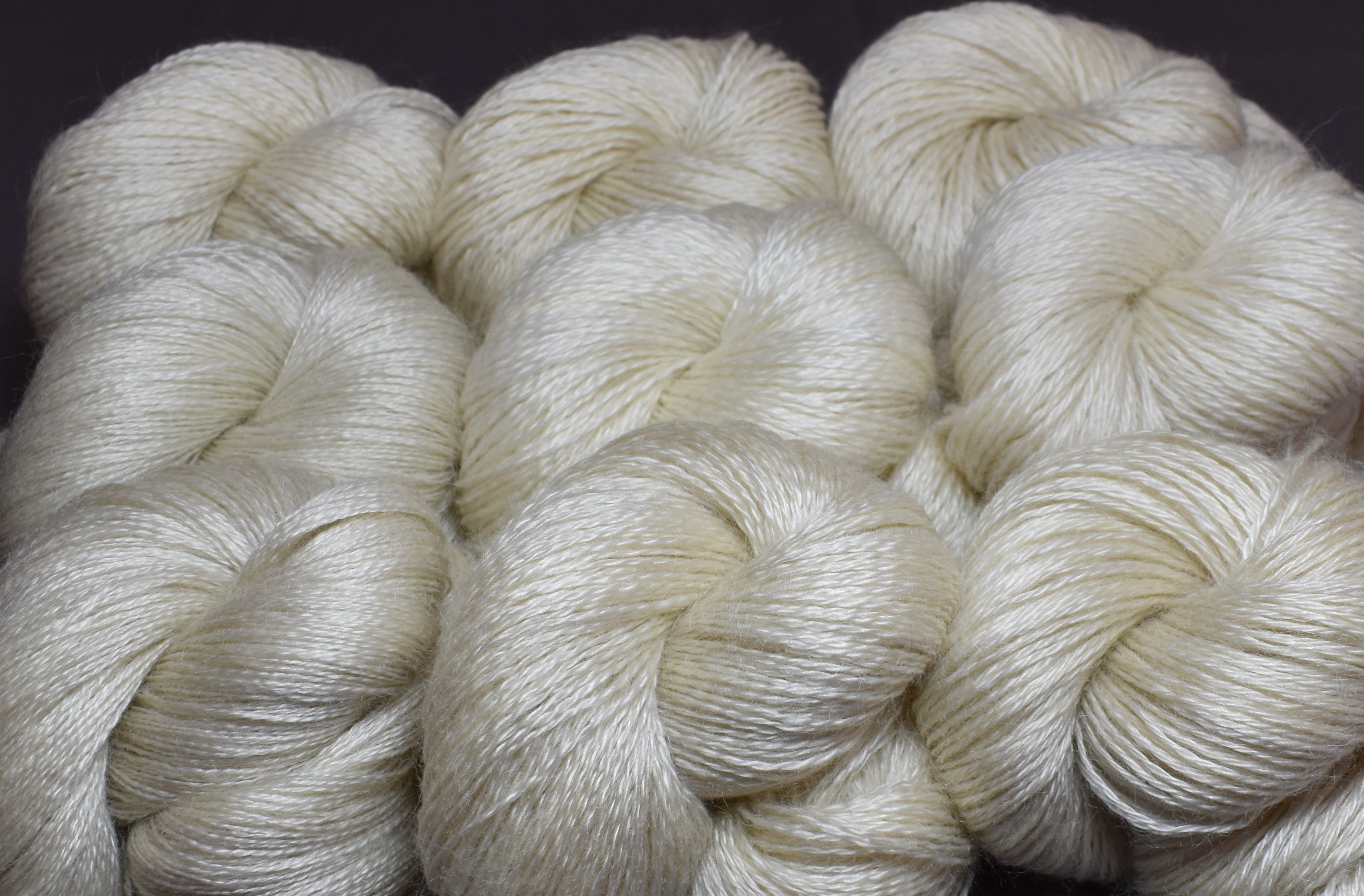 The yarns are presented in 4 different sizes, - 25gm, 50gm and 100gm hanks and 300 or 400gm cones.