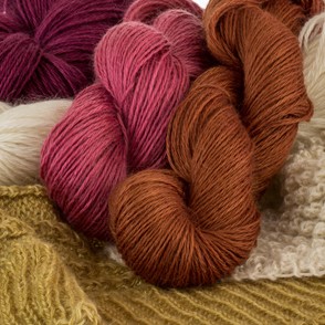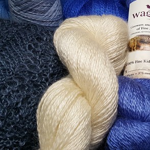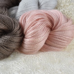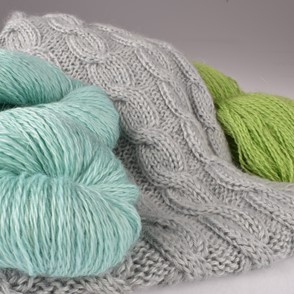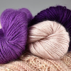 A little less drape, a little less sheen and ever so slightly, a little more bounce in this lace yarn. A personal preference for lace enthusiasts as to whether to use the 100% Kid Mohair or add some fine Merino Wool. CLICK on PHOTO for more information